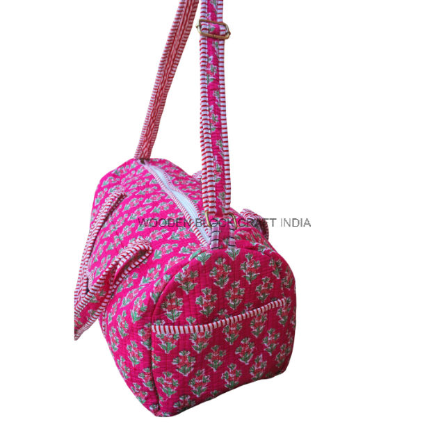 High Quality Pink Quilted Floral Printed Weekender Bag Stylish Cotton Duffle Shoulder Strap Handles for Yoga Beach Gift for her
