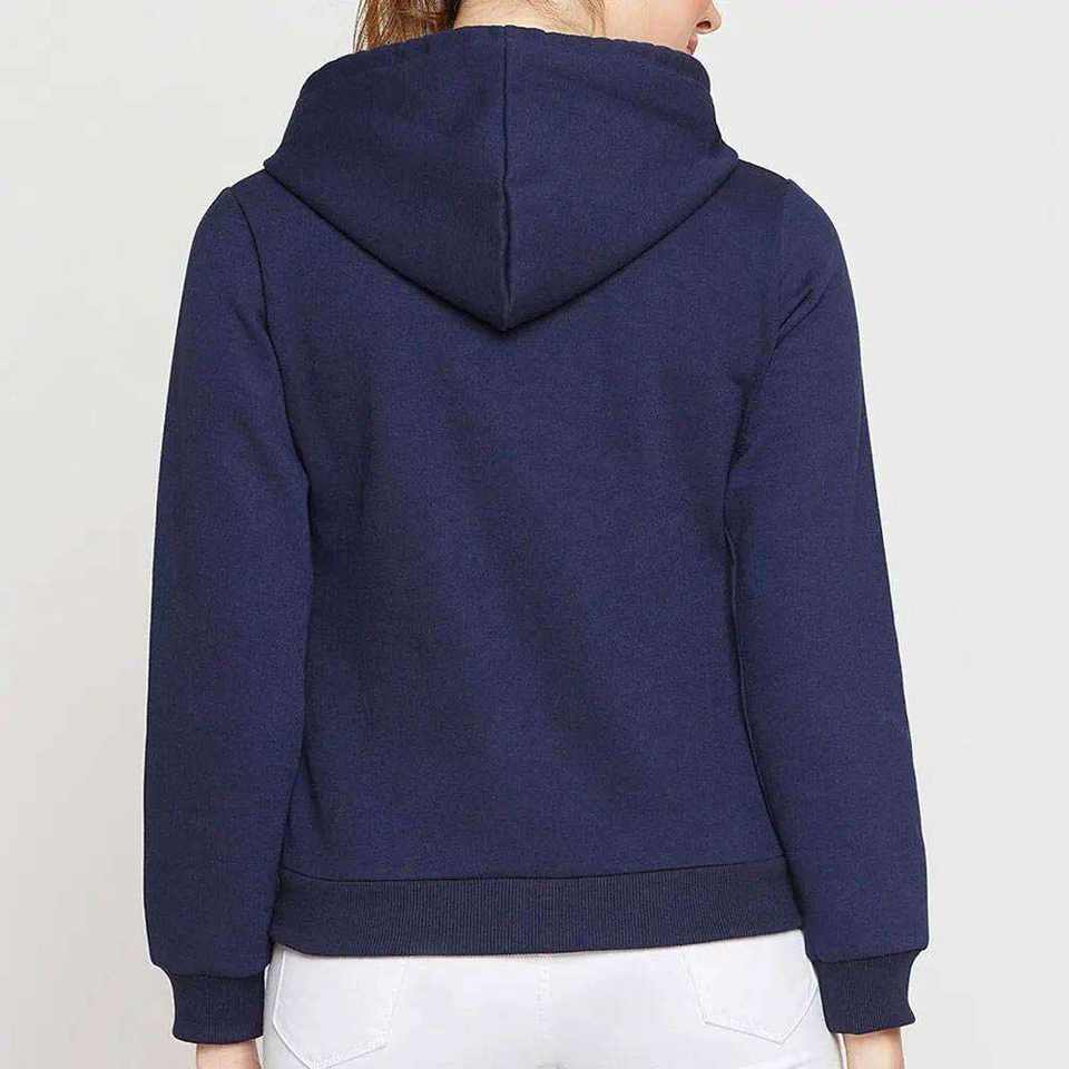 High Quality Plain Blue Color Zipper Hoodies For Women Custom Logo 100% Cotton Fabric Solid Pattern Plus Size Breathable Hoodie