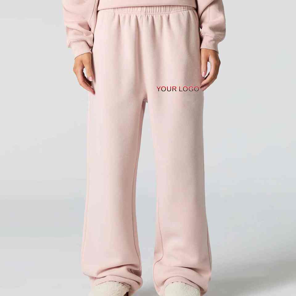 High Quality Polyester/Cotton 300 GSM Fleece Heavyweight Wide Leg Winter Lace Sweatpants Oversized Gym Joggers Elastic Waist