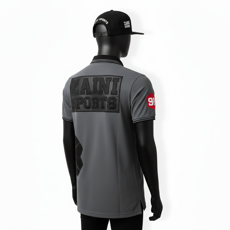 High Quality Polyester Men Polo Shirt 220 GSM Grey Black Rib Collar Panel Design Custom Logo Men's Polo Shirt