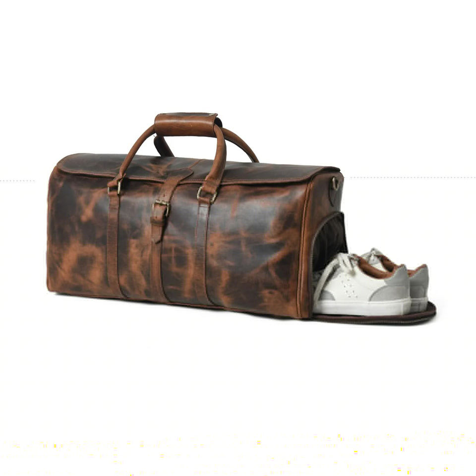 High Quality Portable Large Capacity Luxury Leather Duffle Crossbody Gym Weekend Travel Bag with Dog Pendant for Men Women