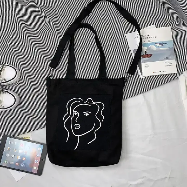 High Quality Premium Cotton Canvas Tote Bag New Trendy Custom Printed Logo Large Shopping Bag Striped Handle Crossbody Strap