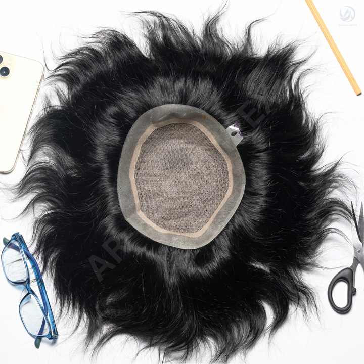 High Quality Premium Toupee for Men Mirage Border Indian Remy Straight Hair Patch with PU Technique 100% Density Middle Design