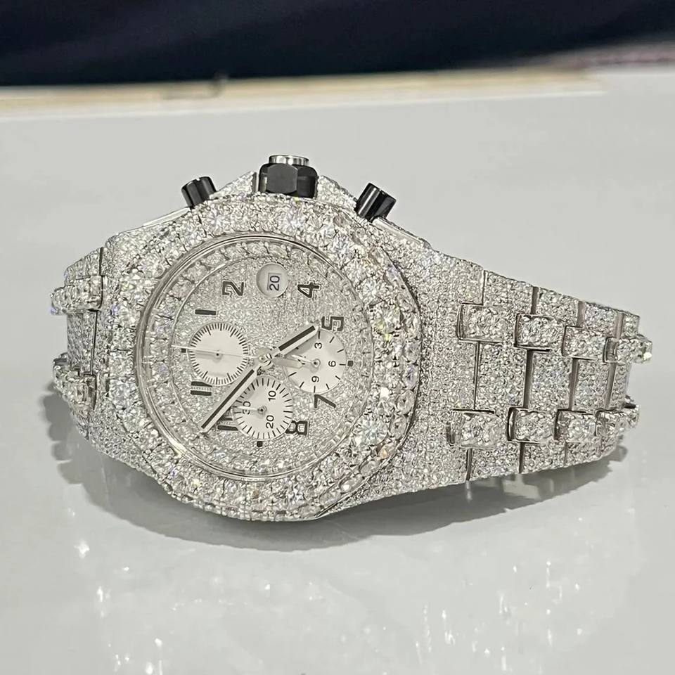 High Quality Premium Unisex VVS Iced White Gold Stainless Steel Silver Digital Watch D Moissanite Diamond Water Resistant