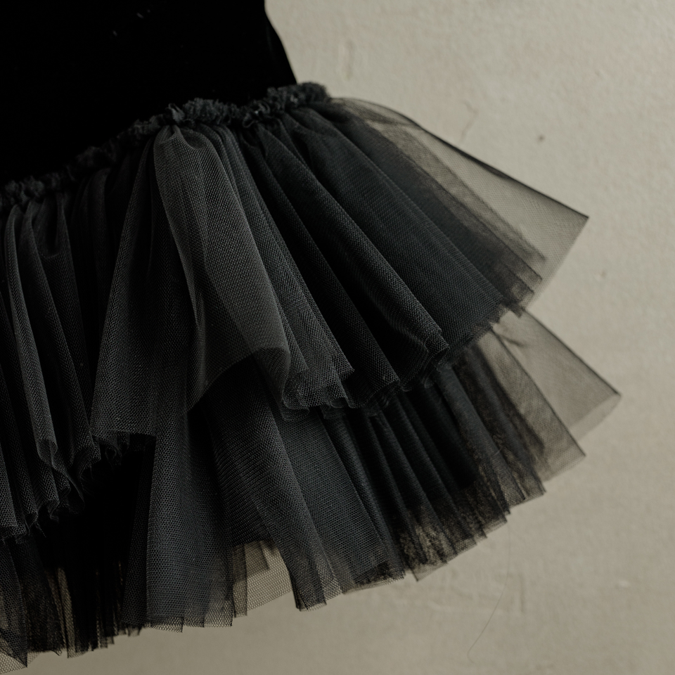 Material:1st layer: Tulle, Velvet; 2nd: Satin