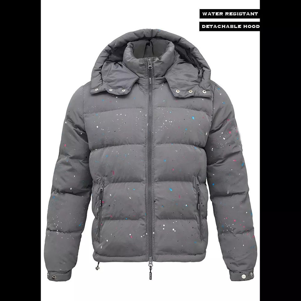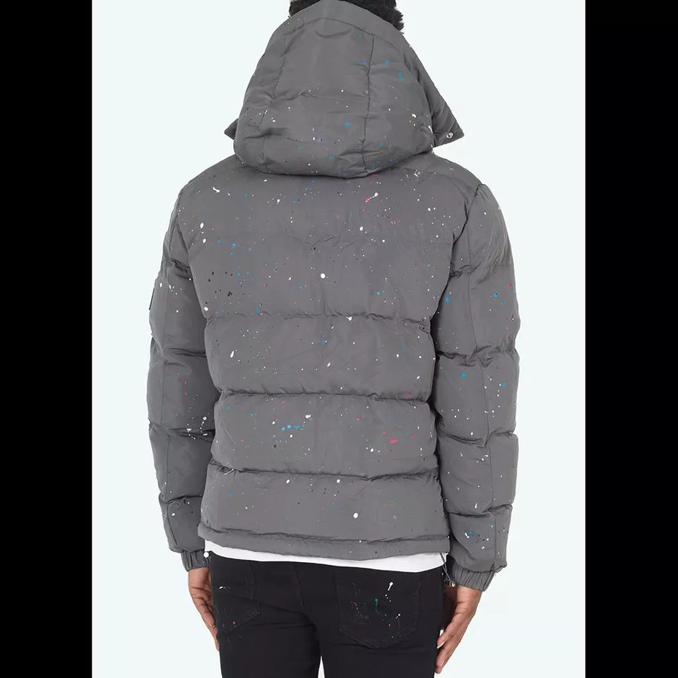 High Quality Print Outdoor Padded Logo Winter Puffer Down Nylon Detachable Hood Puff Custom Jacket Grey Paint