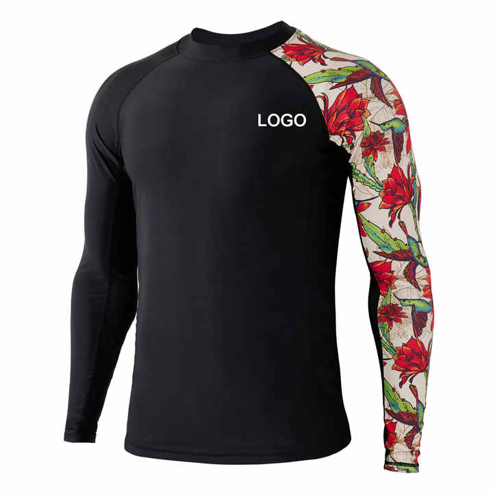 High Quality Printed Colorful Men Rash Guard Long Sleeve Tight Fit MMA Training Wear For Surfing Swimwear And Gym Usage