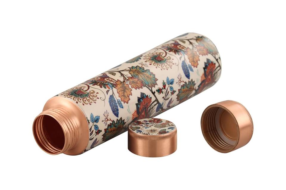 High Quality Printed Flower Design Copper Bottle for Daily Use Copper Water Bottle Eco Friendly Leakproof Flask for Home Office