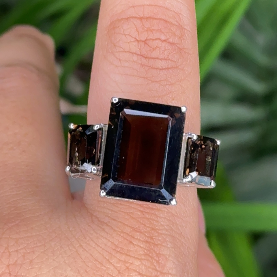High Quality Products 100% Natural Smoky Quartz Three Stone Ring With Prong Setting 925 Sterling Silver Fine Jewelry Stunning