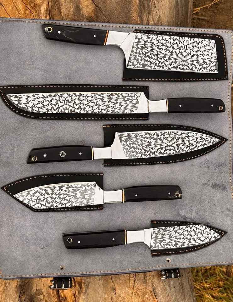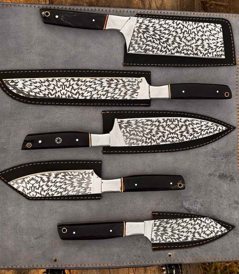 High Quality Professional Chef Knife Sets Carbon Ram Horn Handle Customized logo Knife Kits Japanese Kitchen Knife Set
