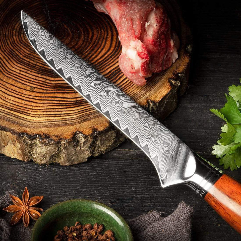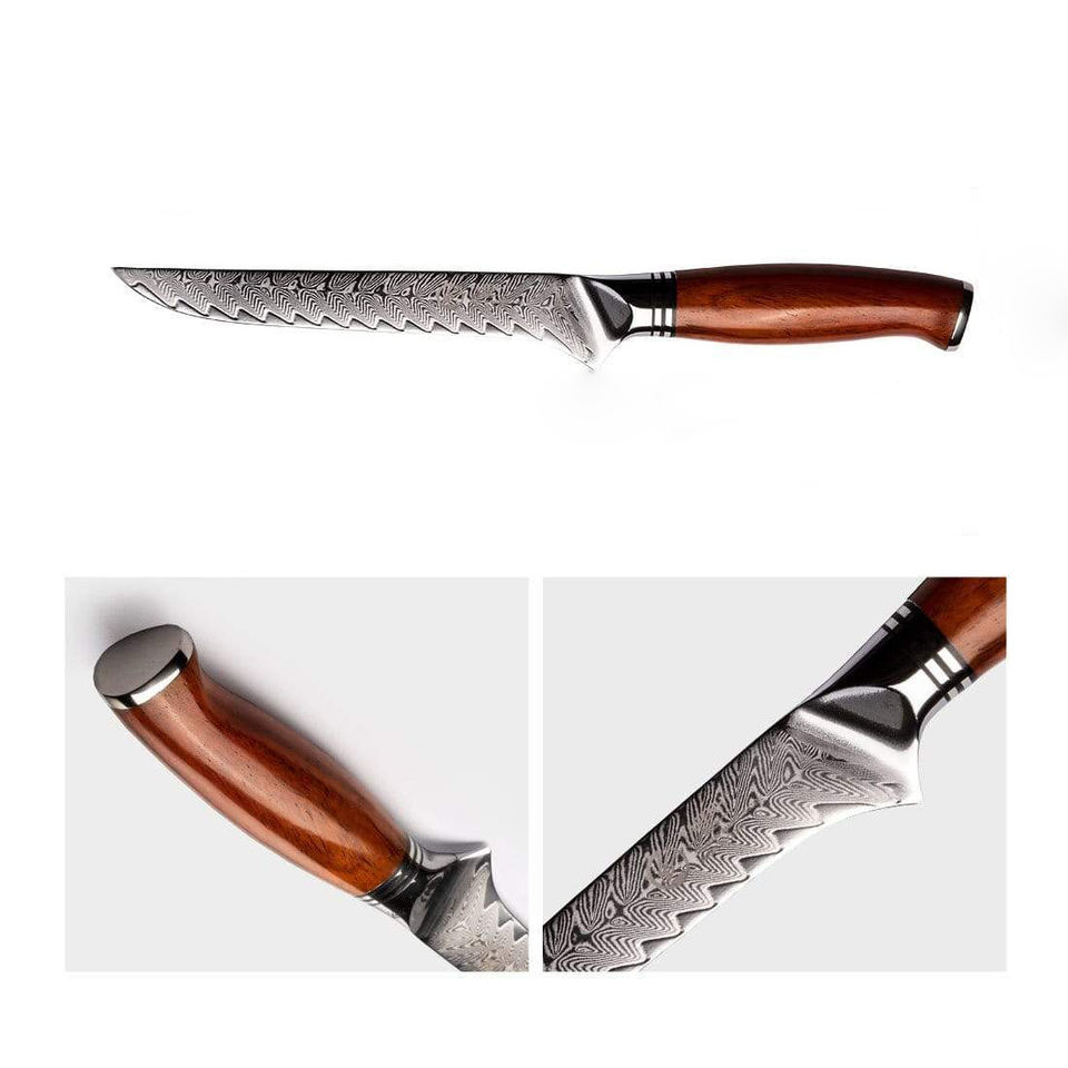 High Quality Professional Damascus Steel Fillet Fish Wood Handle Boning Knives With Box for Kitchen Daily Use