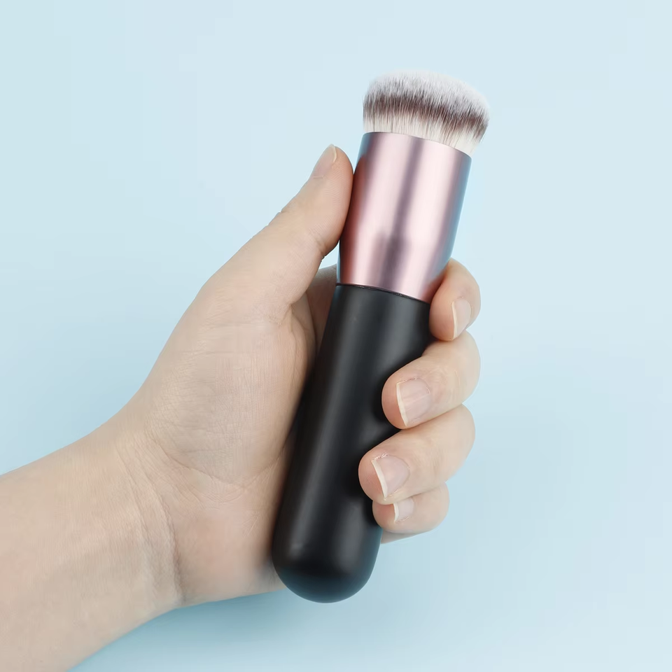 High Quality Professional Foundation Kabuki Brush Private Label Dense Hair Big Head Flat End Tan Brush for Makeup