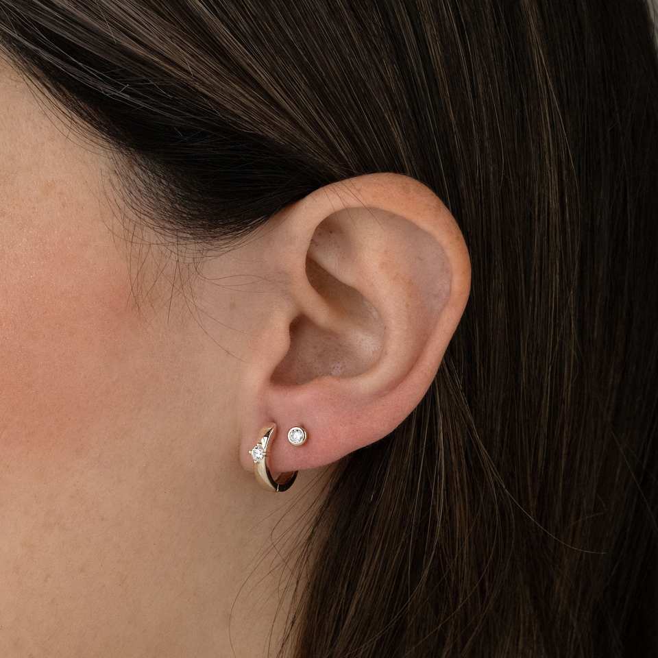 High Quality Prong Setting Real 925 Sterling Silver Simple Round CZ Hoop Earrings for Women Wholesale Bulk Fine Jewelry Gift