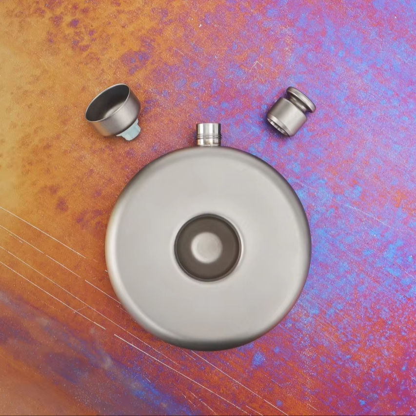 High Quality Pure Titanium Round Hip Flask 5Oz (150ml) Wine Bottle Personalized Camping