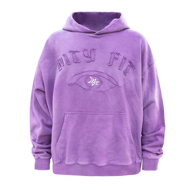 High Quality Purple French Terry Sun Faded Hoodie Custom Vintage Wash Sunfade Embroidery Letter Hoodies