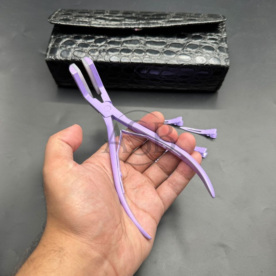 High Quality Purple Heavy-Duty Stainless Steel Tape Hair Extension Pliers Silicon Grip Clips Comb Hair Extension Tool Kit