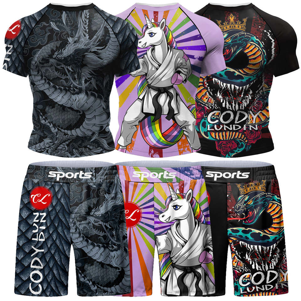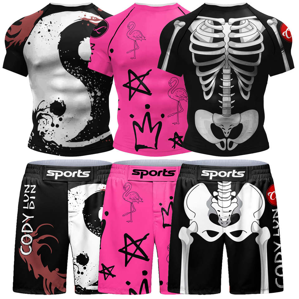 High Quality Quick Dry T-Shirt Shorts Men 2Pcs/Set Muay Thai Wrestling Mma Bjj Boxing Rash Guard Sport Clothing Boxing Suit