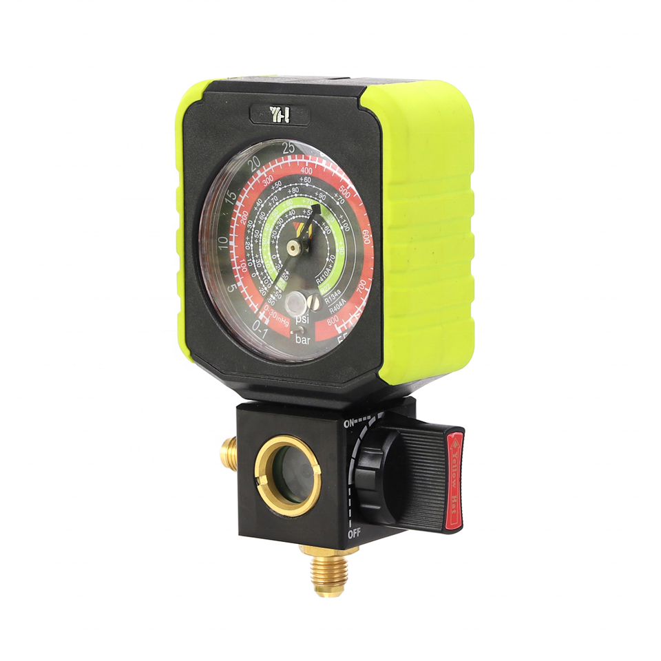 High Quality R32/R22/R134A/R404A/R410A/R407C Manifold Single Gauge Valve 0-55bar With LED lighting Anti-collision HVAC Tools