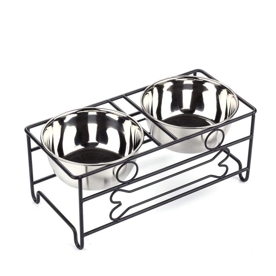 High Quality Raised Pet Feeding Stand with Stainless Steel Bowls and Ornate Metal Design for Dogs Cats and Puppies