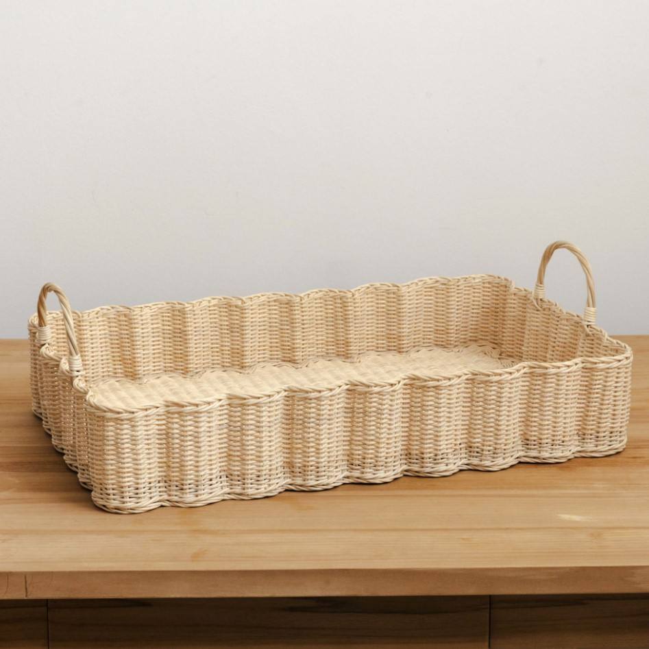 Product name:Rattan Scalloped Shape Serving Tray with Handles