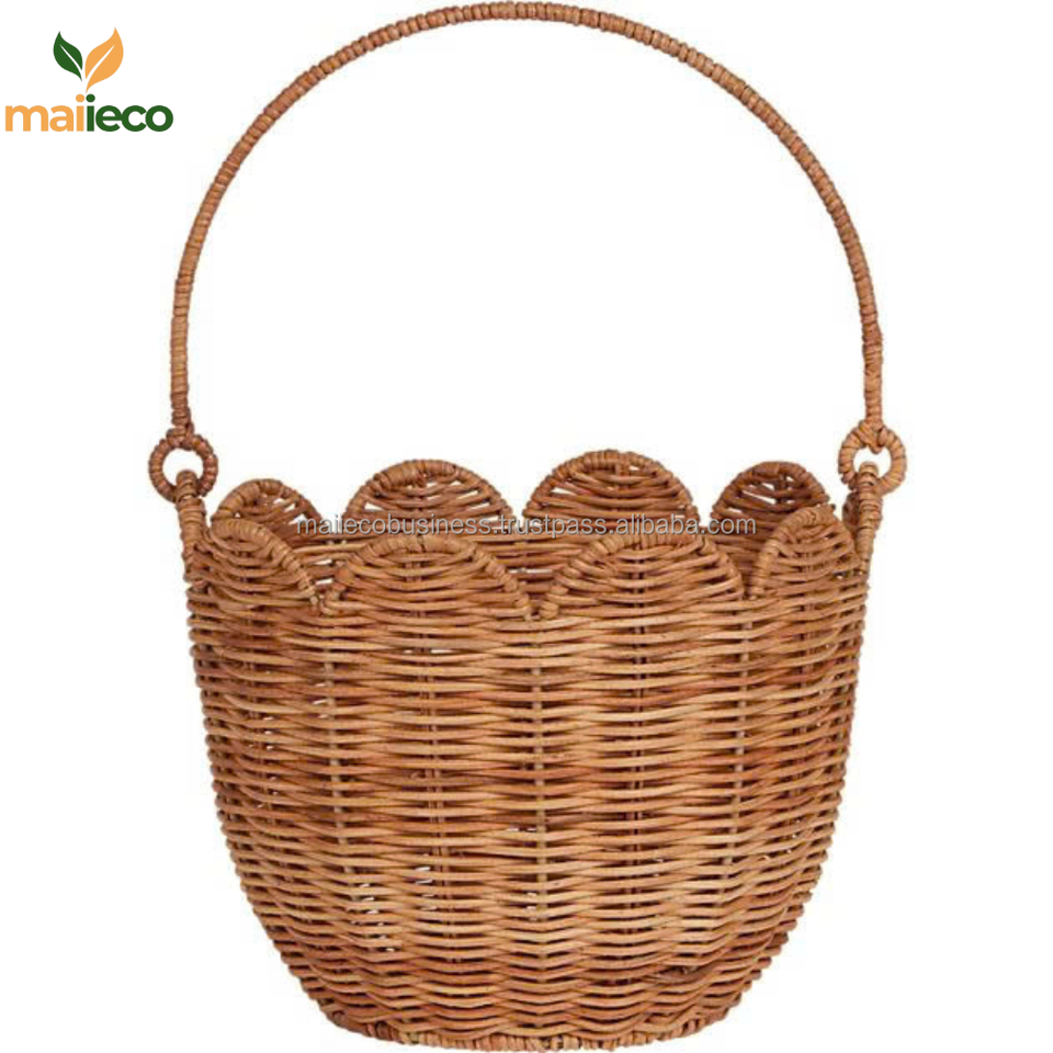 High Quality Eco-friendly Natural Rattan Vintage Tulip Carry Basket for Kids Easter Egg Toys with Round Handle