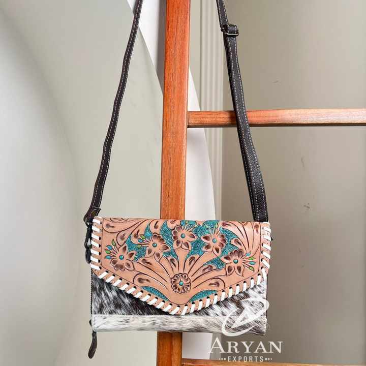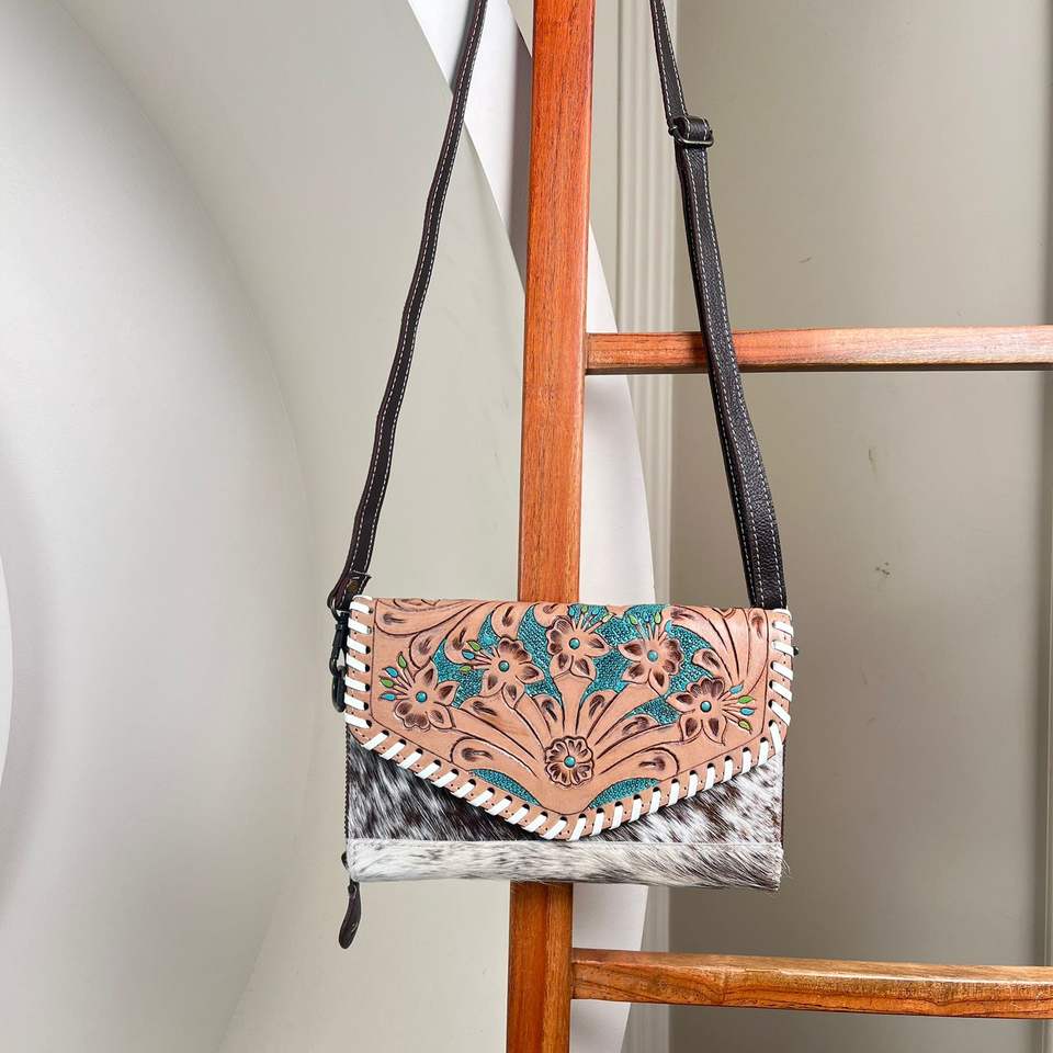 High Quality Real Cowhide Leather Tooled Carving Clutch Genuine Leather Crossbody Wallets Collection of Women Muti Uses Mini Bag