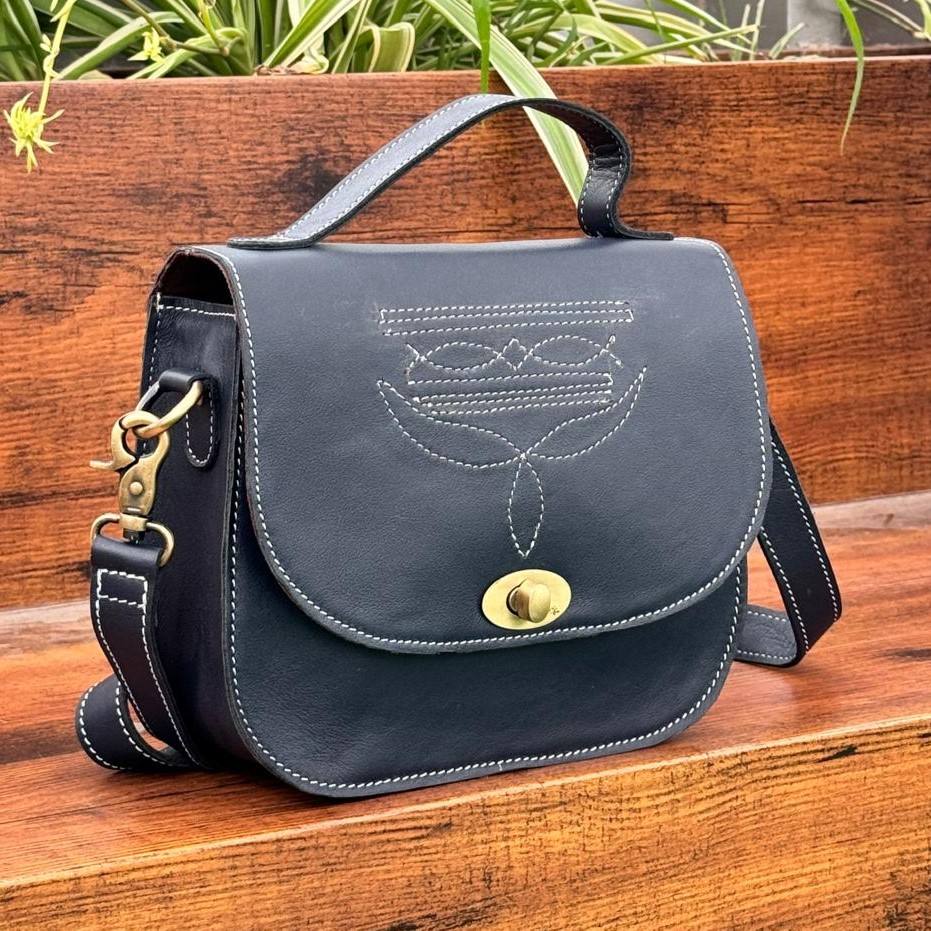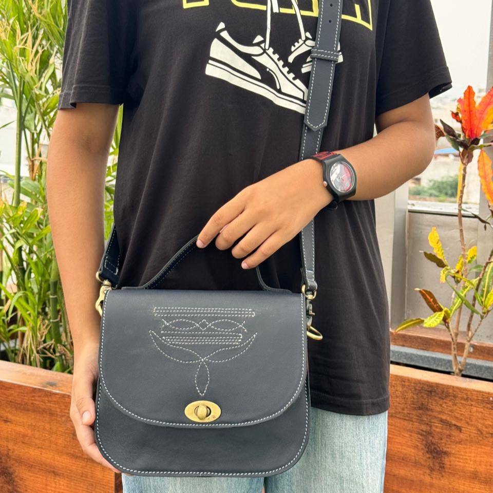 Product Name:Genuine Leather Boot Stitch Crossbody Purse