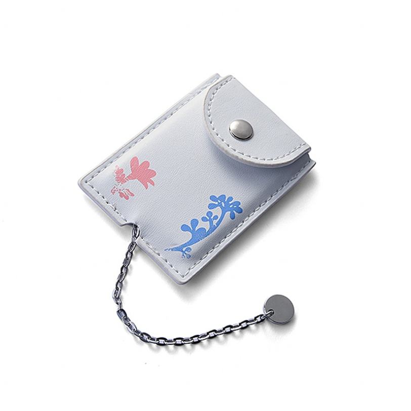 High Quality Rectangle Silver Portable Single Sided UV Printing Metal Makeup Mirror with PU Pouch