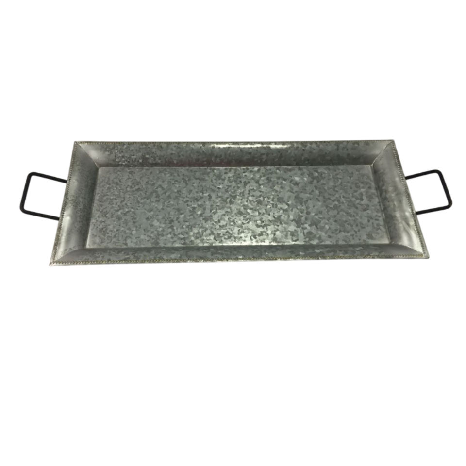High Quality Rectangular Galvanized Metal Serving Tray With Brass Handles Decorative Display Platter For Kitchen & Home Decor
