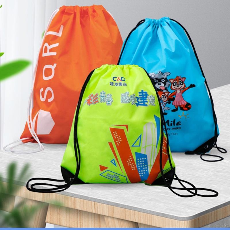 High Quality Recyclable Medium 210D Travel Drawstring Sport Polyester Foldable Backpack Shoes Shopping Bags Storage Clothes Gift