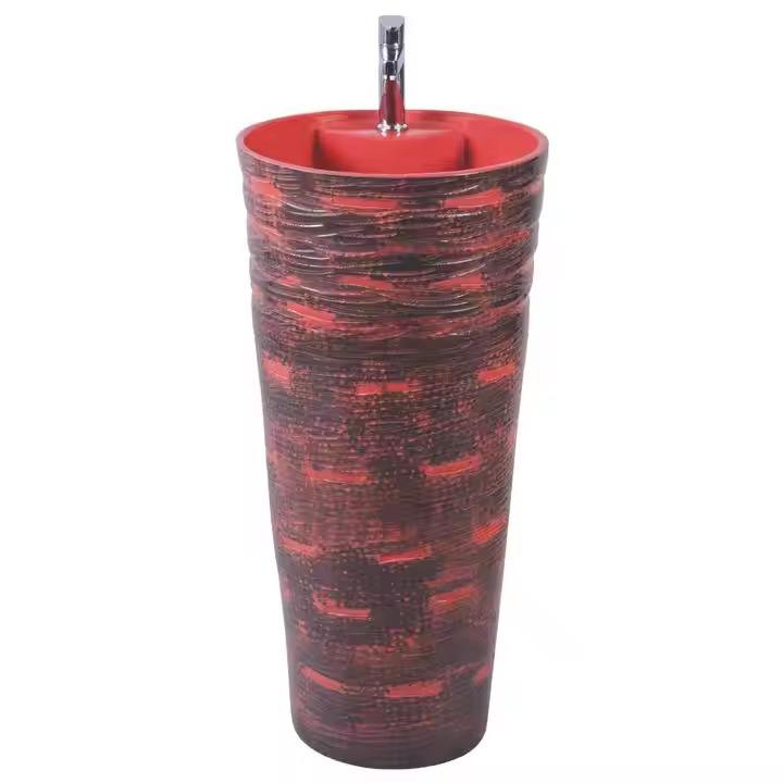 High-Quality Red Porcelain Pedestal Wash Basin Jeker Set Lavabo Sink Twyford Designer for Libya Africa India Export