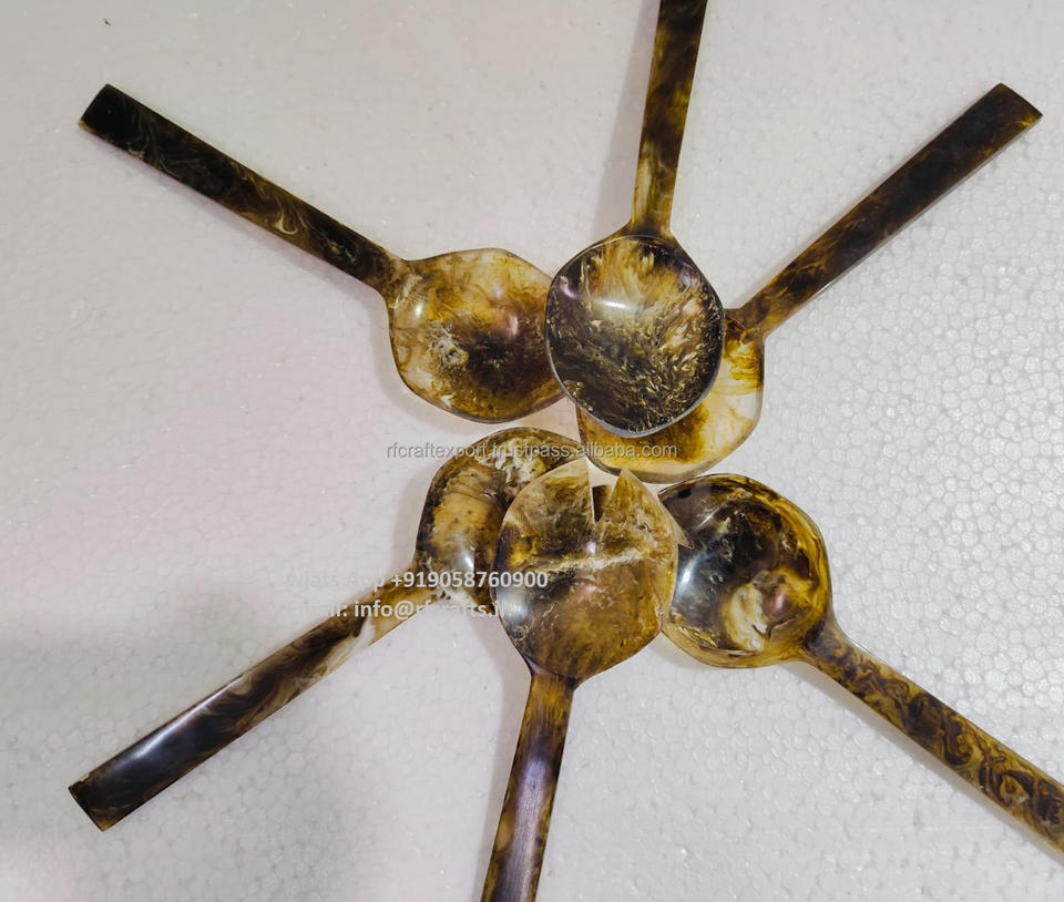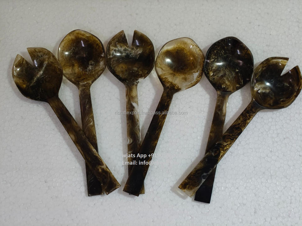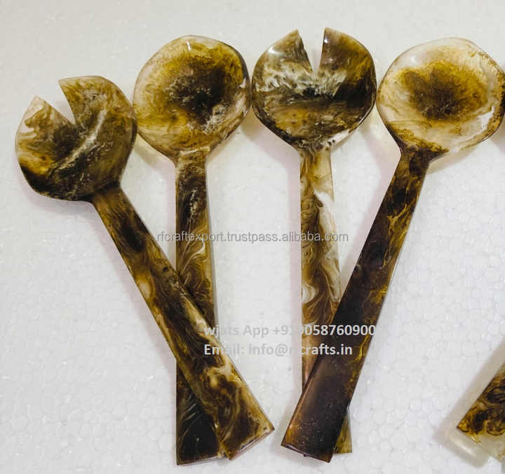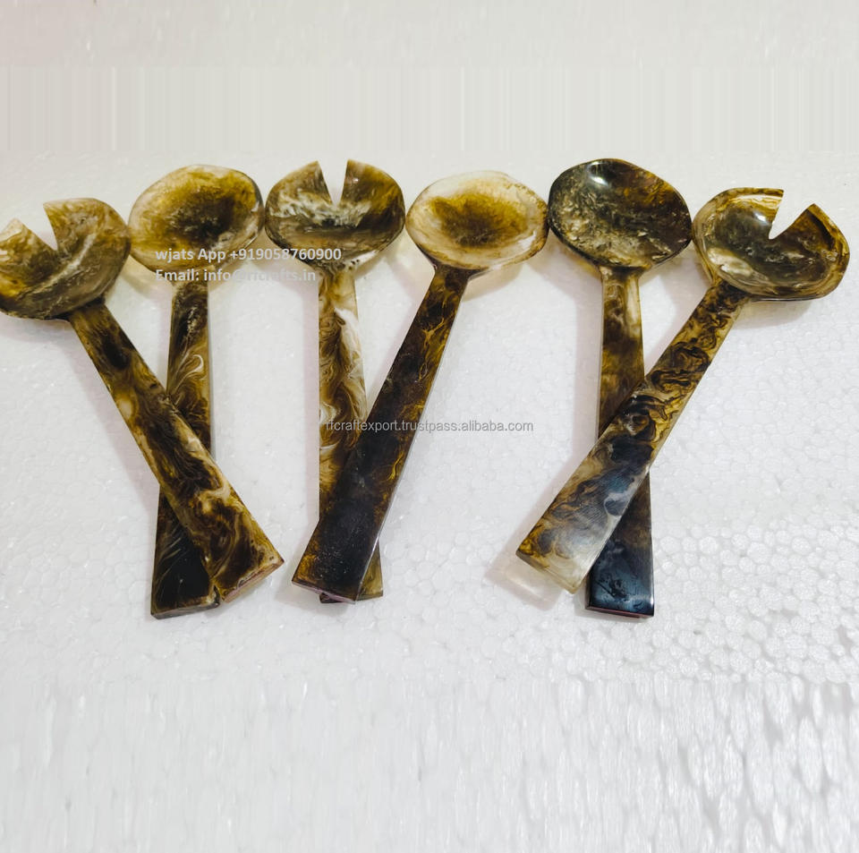 High Quality Resin Cutlery Set Resin Wood Handle Mint Resin Flatware Serving Kitchenware Tableware Spork Salad Spoon