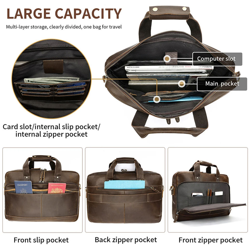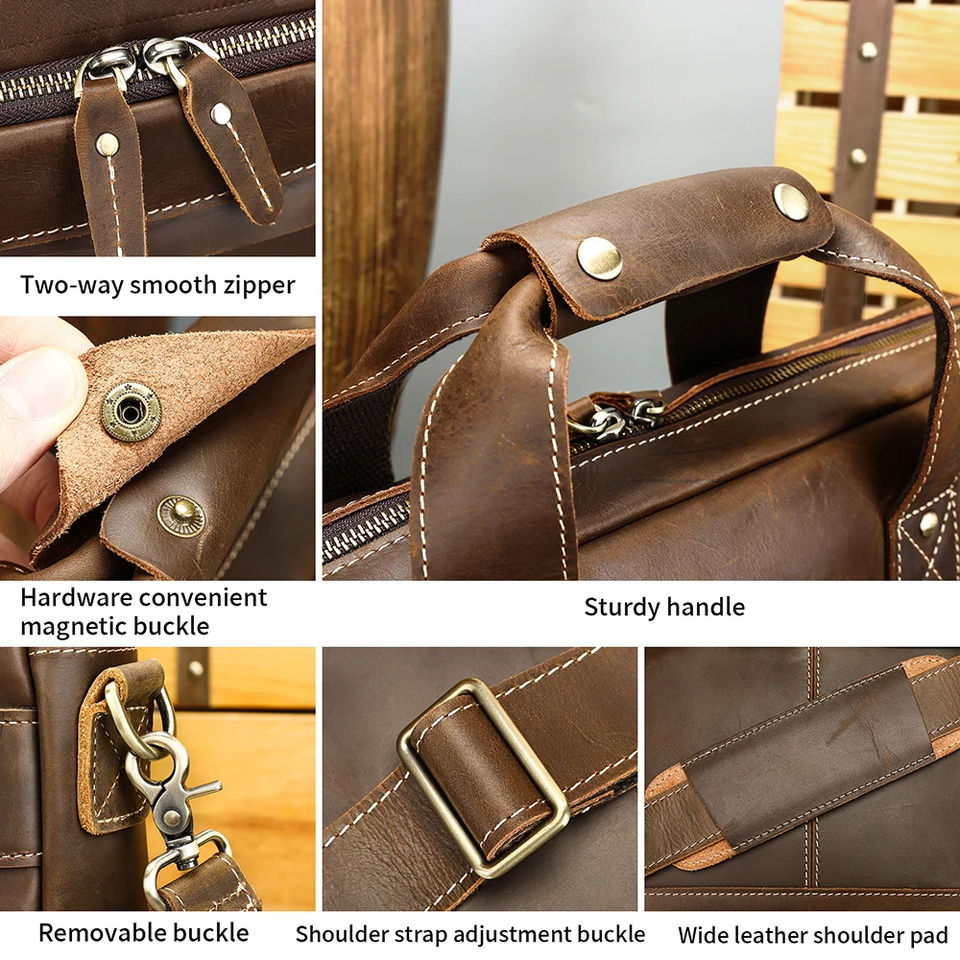 High Quality Retro Style Men's Laptop Messenger Bag Crossbody Shoulder Carry Genuine Leather Waterproof Large Capacity Portable