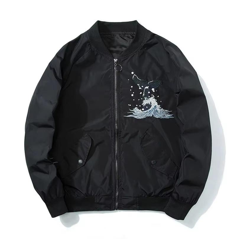 High Quality Reversible Autumn Embossed Streetwear Canvas Jacket Waterproof Breathable Quilted Front Logo Stain Resistant