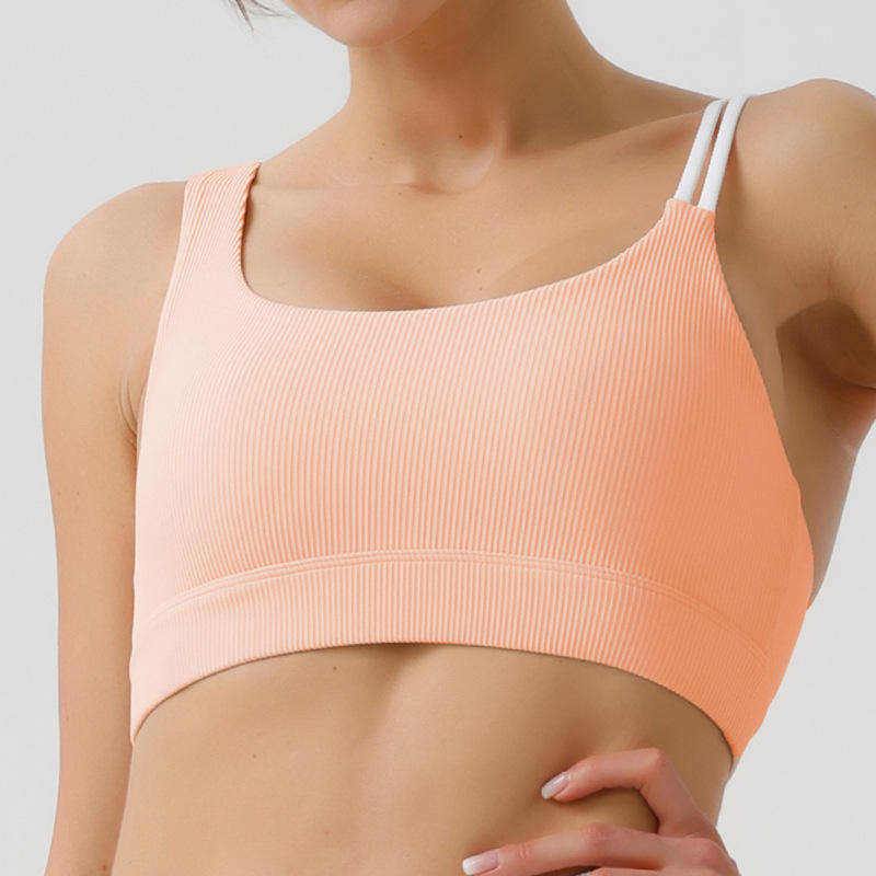 High Quality Ribbed Recycled Nylon Strappy Sports Bra Gym Fitness Workout Tank Top for Women Beautiful Solid Summer Teenagers