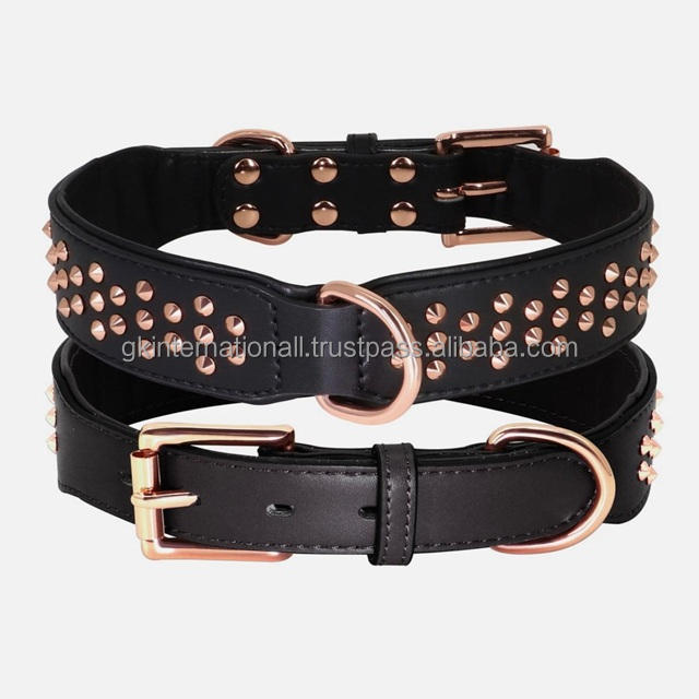 High Quality Rivet Studded Pet Dog Leather Collar Heavy Duty Adjustable Studded Dog collar for medium or large dogs
