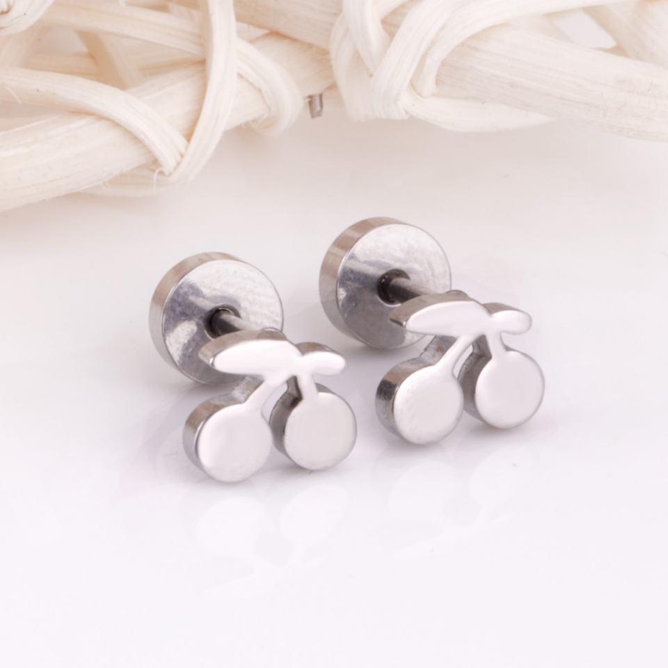 High Quality Romantic Wholesale Stainless Steel Cherry Shape Stud Earrings Fashion Piercing Jewelry for Women Ladies