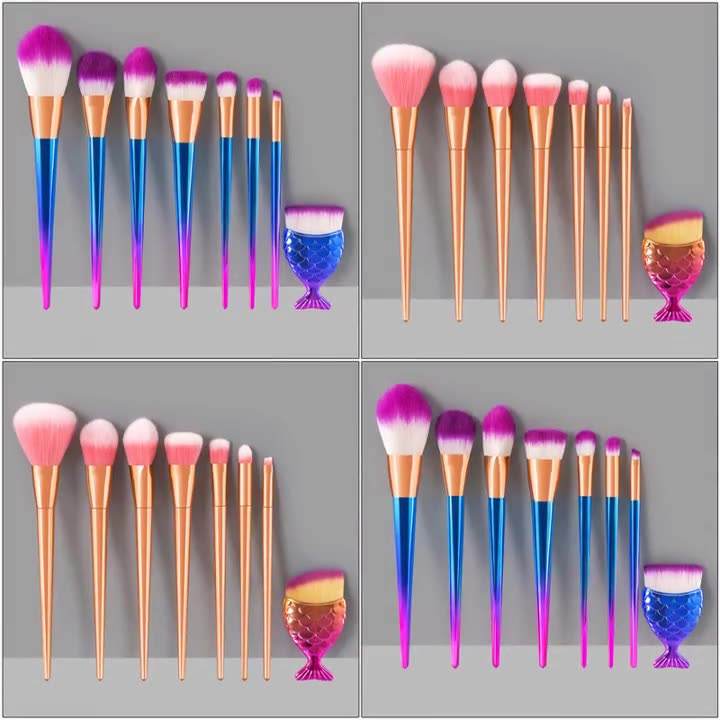 High Quality Rose Gold Blue Gradient Vegan Synthetic Hair Makeup Brushes Wood Handle Private Label Set Low Price Free Sample
