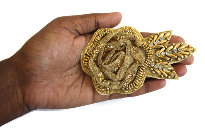 High Quality Rose Patch Stones Beaded Embroidered Flower Design New Latest Garments Accessories Decor Heart Canvas Export
