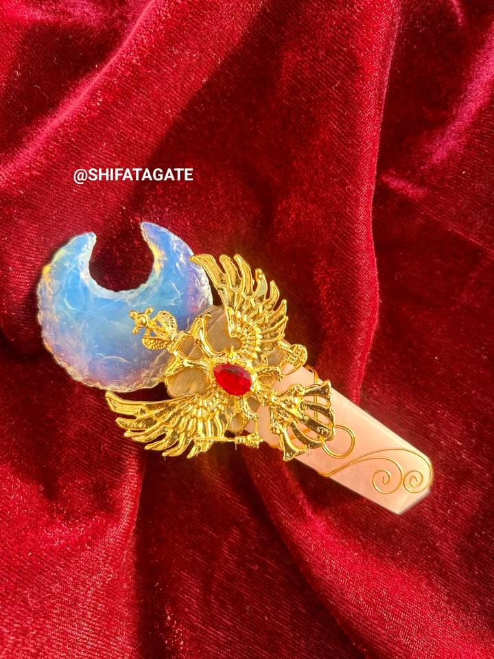 Rose Quartz Magic Wands Opalite Crescent moon & Gold Eagle