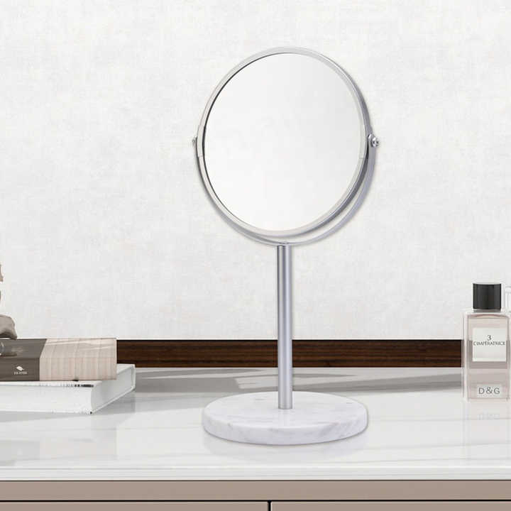 High Quality Round Desk Mirror Iron Double-Sided Table 3X Magnifying Makeup Mirror With Marble Base