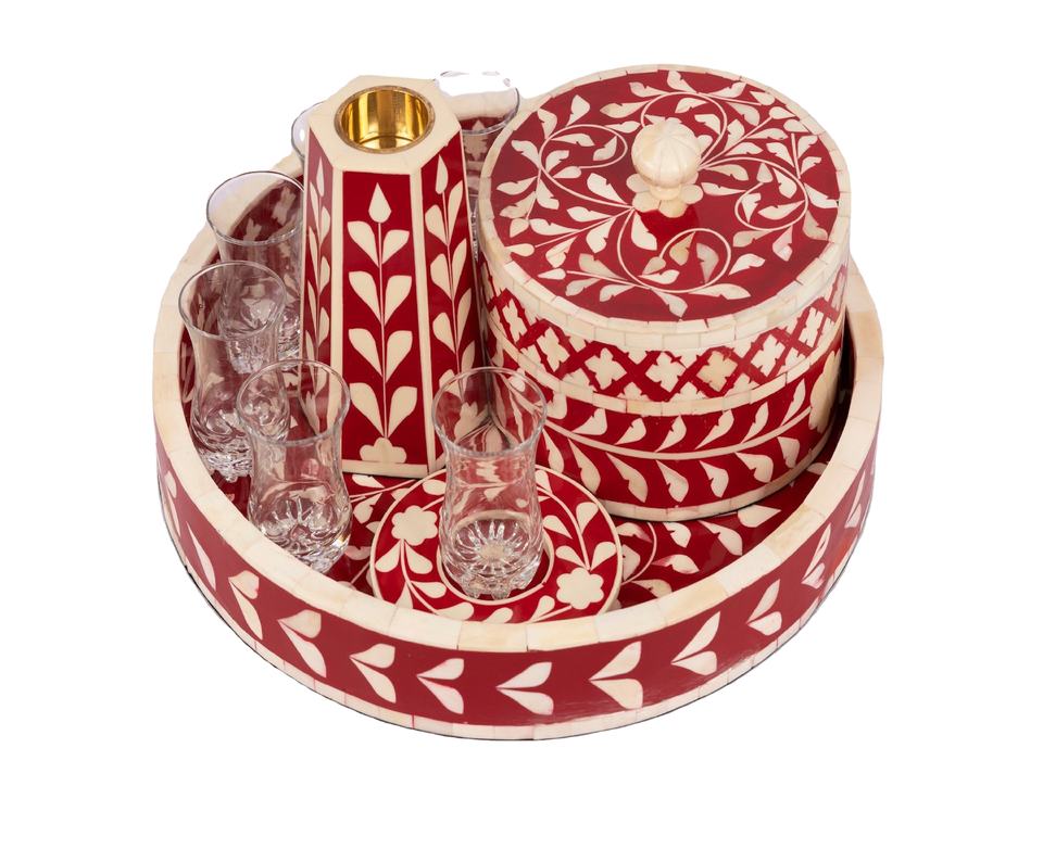 High Quality Round Wood Mop Inlay Tray With Resin Dessert Serving Tray for Ramadan Eid Gift Platter Table Top Tray for Fruits