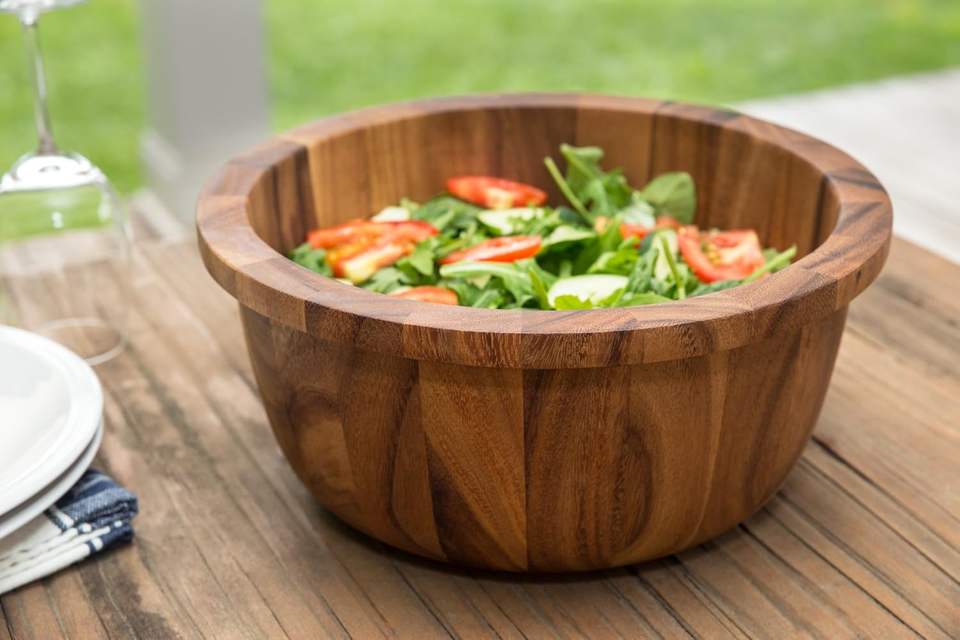 High Quality Rustic Acacia Wood Salad Bowl with Wide Lip Handcrafted Serving Bowl for Salads Fruits and Decor
