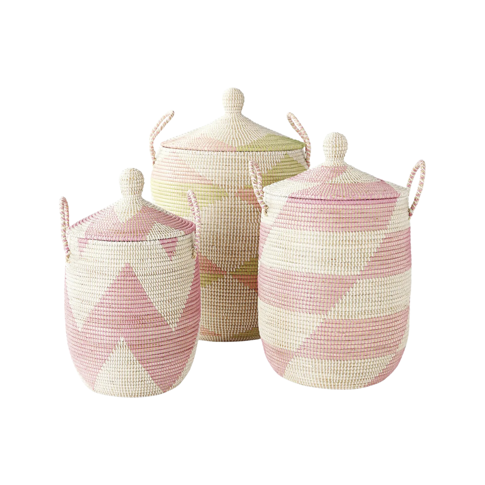 Seagrass Set of 3 Woven Storage Baskets Handles with Lid