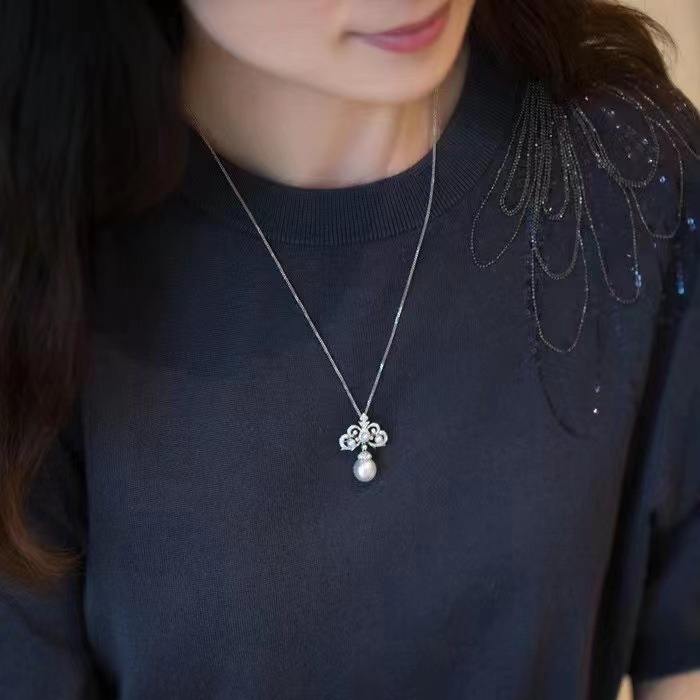 High Quality S925 Silver Freshwater Round Edison Pearl Crown Pendant Necklace Large White Pearl with Clavicle Chain