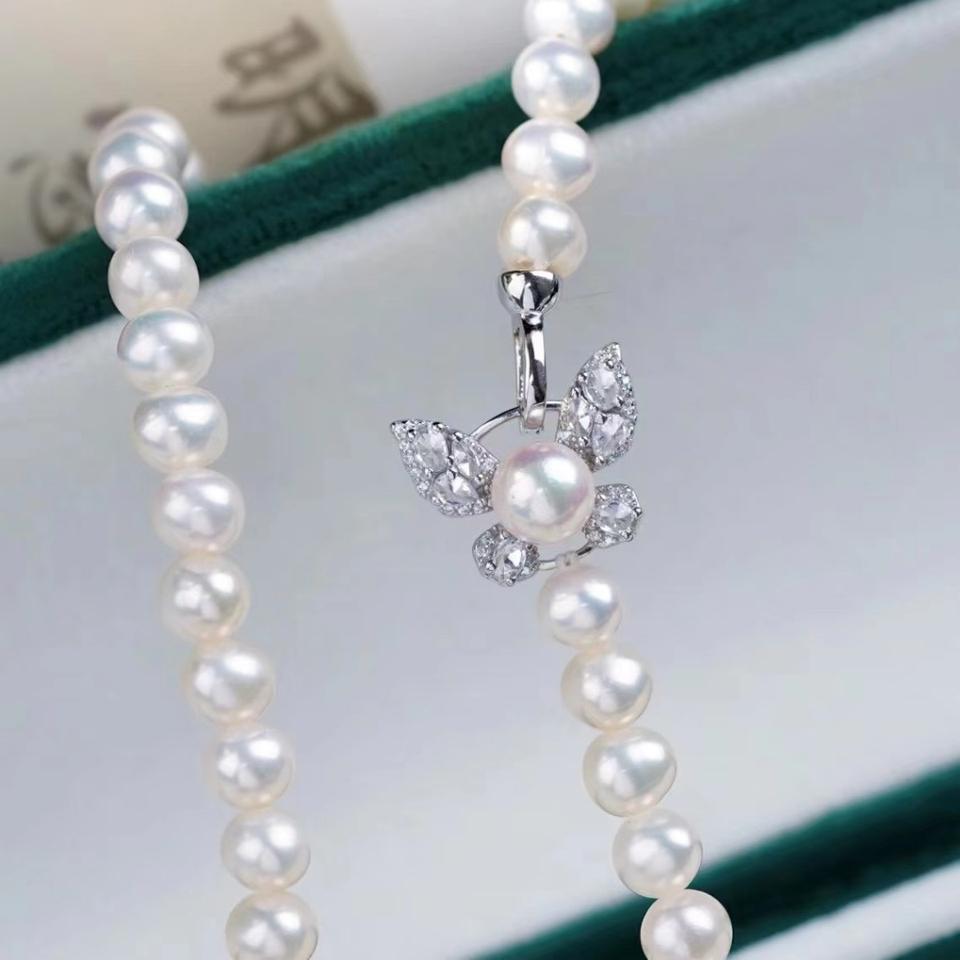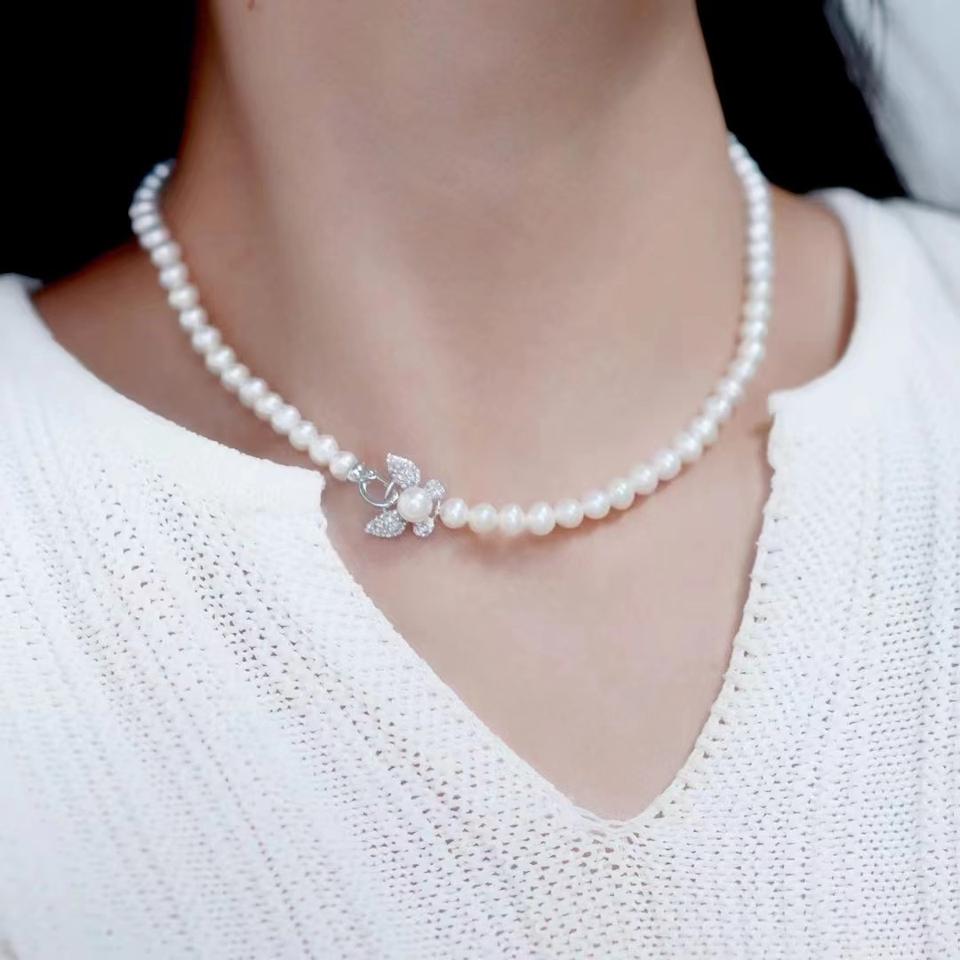 High Quality S925 Silver Necklace with Butterfly Buckle 5.5-6mm Near-Round Clean Flawless Premium Pearl Necklace