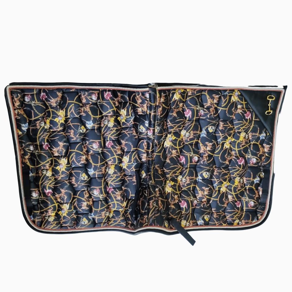 High Quality Satin Saddle Kitted Fly Mask Set Luxury Equestrian Cotton Filling Glitter Wicking Lining for Saddle Pads Customized