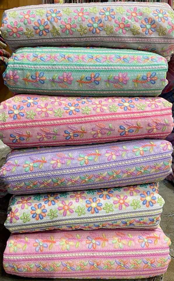 High-Quality Schiffli with Position Printing Intricate Eyelet Embroidery Combined with Printed Motifs on Soft Cotton or Rayon