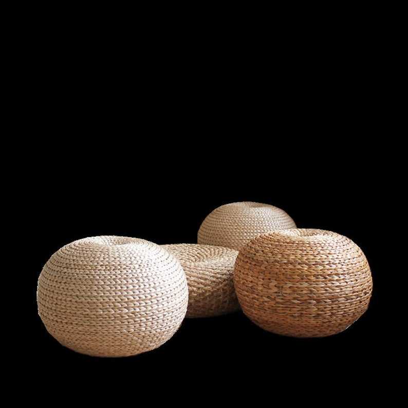 High Quality Seagrass Water Hyacinth Ottoman Storage Bench Ottoman Chair Pouf Durable Handwoven Living Room Furniture