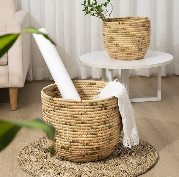 High Quality Seagrass Woven Storage Basket with Lid Handcrafted From Straw Wicker for Home for Hamper Laundry
